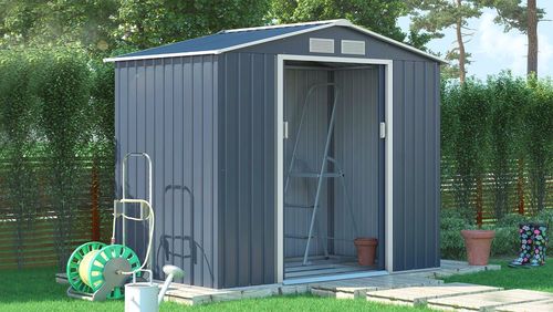 Az ARCHER kerti házban például kerti szerszámokat, kerékpárokat, fűnyírókat, medence tartozékokat stb. tárolhat. A modern kialakítású kerti ház bármilyen kertbe illeszkedik. A ház dupla tolóajtóval és magas bejárati nyílással rendelkezik, így kényelmesen hozzáférhet. Acél, horganyzott szerkezet szellőzőrácsokkal. Nincs padló. Termék részletek: A termék magassága: 195 cm A termék szélessége: 213 cm A termék hossza: 127 cm súlya: 47 kg acéllemezek vastagsága: 0,25 mm szürke színű Csomag mérete: 171x71x12cm csomagolóanyag: karton Csomag tartalma: 1x kerti ház ARCHER